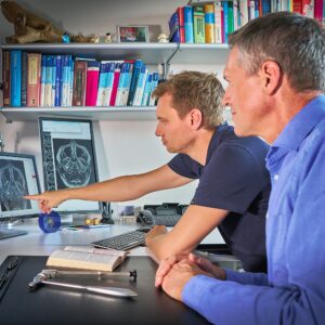 Daran schließt sich eine an die Beschwerden angepasste körperliche Untersuchung an. Anamnese und körperliche Untersuchung erlauben es uns Neurologen dann meist, die Region im Nervensystem zu lokalisieren, von der die Beschwerden ausgehen, und eine Verdachtsdiagnose zu stellen. Dieser Verdacht kann schließlich durch apparative Diagnostik bestätigt oder ausgeschlossen werden, speziell durch